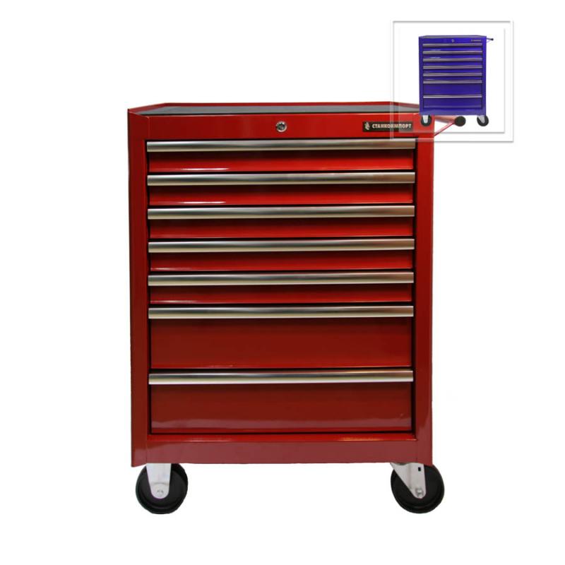 Тележка инструментальная для автосервиса с 7 ящиками, синего цвета